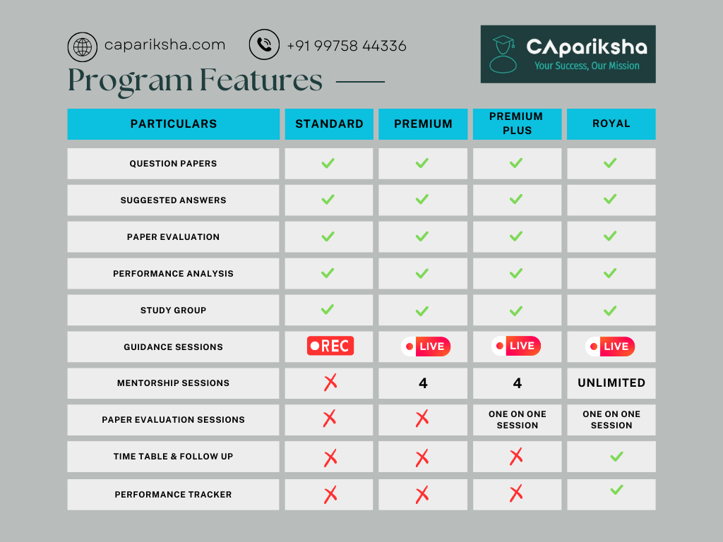 We have designed a unique and highly effective approach to exam preparation that ensures comprehensive revision and boosts student confidence through repeated practice. Our strategy involves the following key elements: Cumulative Revision Approach Each subject is divided into three distinct papers for CA Final Students, each covering 35% of the full syllabus, for CA Intermediate and CA Foundation Students each subject is divided into two distinct papers. This structure allows for targeted revision and repeated exposure to the content, helping you internalize key concepts effectively. By taking multiple tests, you gradually strengthen your understanding and improve your exam performance. These 3 papers of 35% Syllabus each in case of CA Final and 2 papers of 50% each in case of CA Intermediate / Foundation students is followed by 2 Full Course Test Series ensuring a thorough preparation for the exams Strategic Test Timing The first test is scheduled 2.5 to 3 months before your actual exam, giving you ample time to identify areas for improvement. After the test, you will receive feedback on your performance, allowing you to re-strategize and focus on your weak points. You can then appear for the second test, which will allow you to measure your progress and refine your approach even further. One-on-One Mentorship Program Our personalized mentorship program provides you with direct access to certified mentors who guide you every step of the way. Whether you need help overcoming specific challenges or improving your overall strategy, our mentors will ensure you're on the right track to achieve your goals. Expert Paper Checkers To ensure that feedback is both accurate and constructive, our paper checkers undergo proper training in the subject they are responsible for. This ensures that the feedback you receive is insightful, valuable, and aligned with the highest standards. With this systematic approach to revision, ongoing support from expert mentors, and continuous practice through multiple tests, we are confident that you will be fully prepared to excel in your exams.